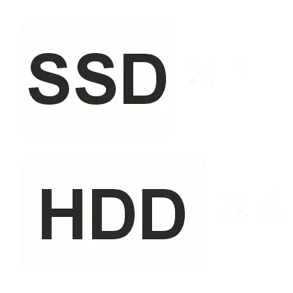 - دارای قابلیت نصب 1 عدد هارد SSD و 4 عدد هارد HDD