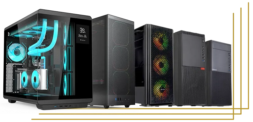کیسهای گیمینگ برند نوآ با جنس بدنه مقاوم، فنهای متعدد، طراحی جریان هوای پویا، نورپردازی RGB و ARGB و فضای نصب قطعات قدرتمند شناخته میشوند.
