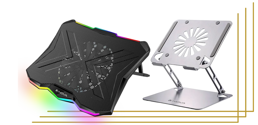 استند و کولپدهای لپتاپ نوا با طراحی ارگونومیک، بدنه مقاوم و فنهای خنککننده قدرتمند، جریان هوا را بهطور مؤثر افزایش داده و دمای لپتاپ را در استفاده طولانیمدت کنترل میکنند.